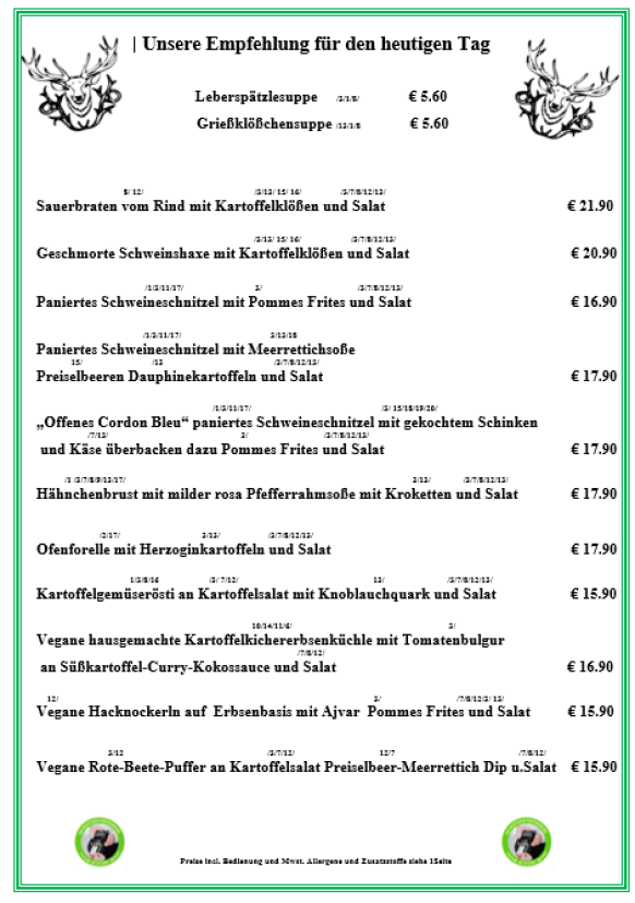 Gasthaus zum Hirschen Hauptstraße 27 97993 Creglingen Telefon: 07933 203240